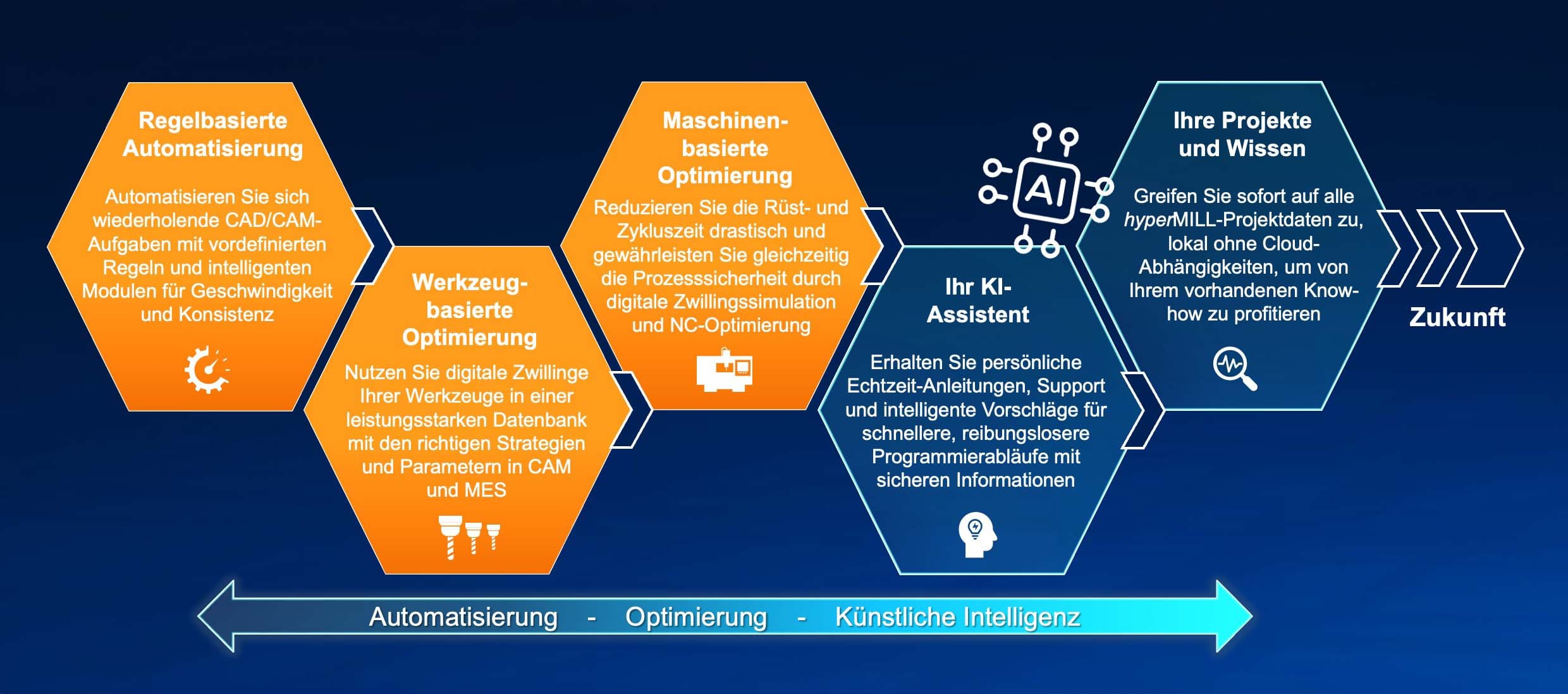 hyperMILL INTELLIGENCE zeigt, wie smarte Automatisierung und AI Hand in Hand arbeiten, auf Basis bewährter Technologie.“