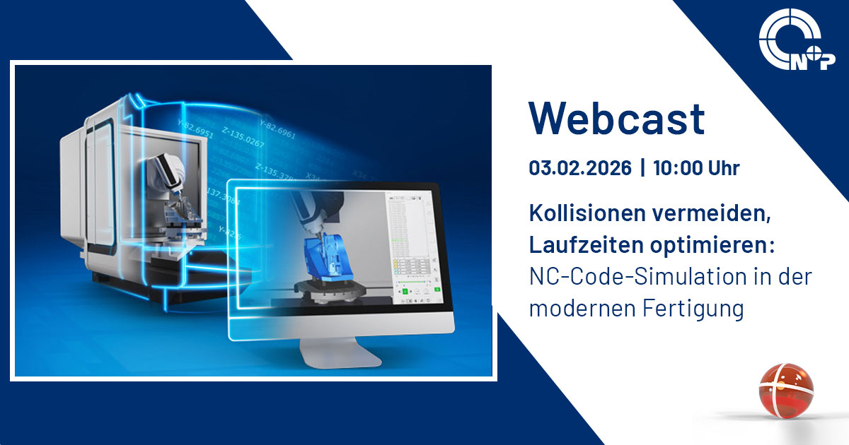 Unser Partner N+P veranstaltet einen praxisnahen Webcast, zu dem wir Sie herzlich einladen. Im Fokus stehen NC-Code-Simulation, Werkzeugweg-Optimierung und der digitale Zwilling in der modernen Fertigung mit hyperMILL VIRTUAL Machining.