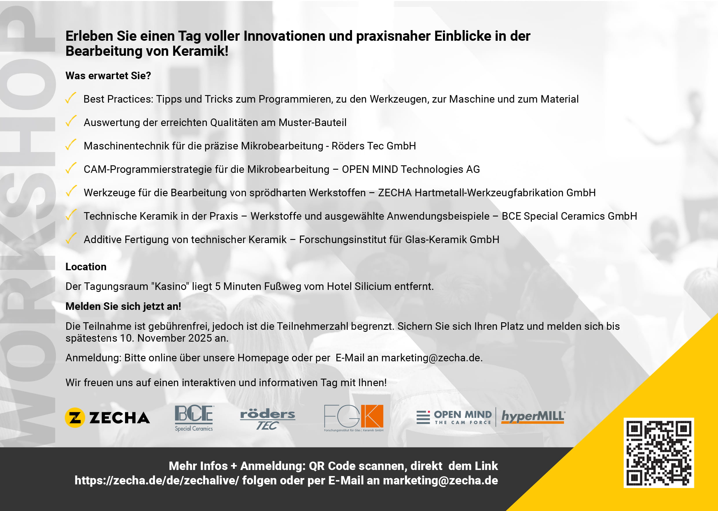 Erleben Sie einen Tag voller Innovationen und praxisnaher Einblicke in der Bearbeitung von Keramik!
