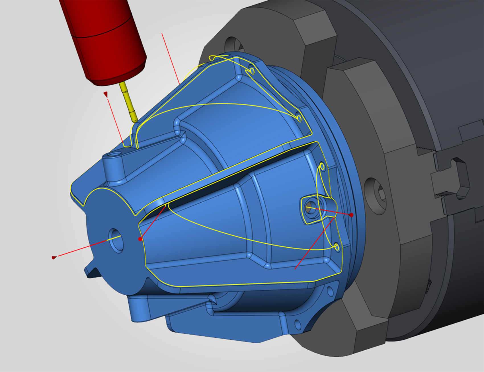 OPEN MIND nutzt die Gelegenheit, im aktuellen Release neu hinzugekommene Funktionen vorzustellen. Für das 3D-optimierte Schruppen wurde der Taschenfräsalgorithmus neu entwickelt, um eine höhere Effizienz beim Schruppen zu erreichen, besonders bei großen seitlichen Zustellungen. Werkzeugbahnverrundungen lassen sich besser steuern durch die getrennte Definition von Kontur- und Bahnradius. Ebenfalls zum Einsatz kommen die neuen, komfortablen Entgratfunktionen. Das 5‑Achs-Entgraten ist eine effektive Lösung, um scharfe Kanten eines Bauteils zu brechen. Nach der Selektion der Kanten berechnet die Strategie alle Werkzeugwege automatisch. Die Strategie unterstützt sowohl einen 5‑Achs-Modus, bei dem die Bearbeitung nach Möglichkeit indexiert erfolgt, als auch einen 3‑Achs-Modus. Dasselbe gilt für die Strategie zur Entgratung von Kanten an Bohrungen, die ebenfalls zum Einsatz kommt.