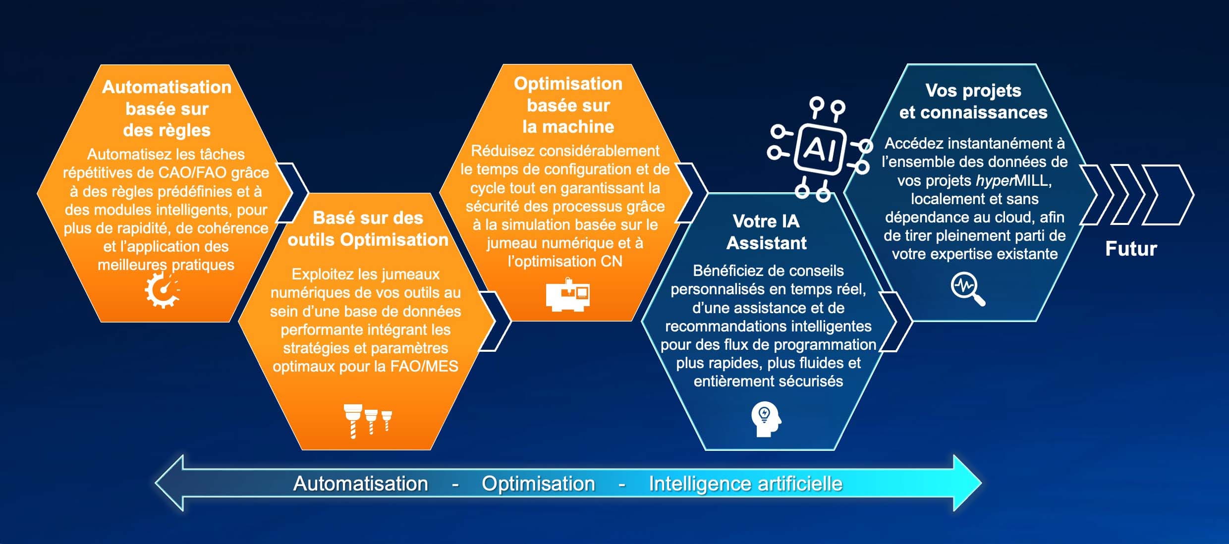 hyperMILL INTELLIGENCE montre comment l’automatisation intelligente et l’AI fonctionnent main dans la main,reposant sur une base technologique éprouvée. »