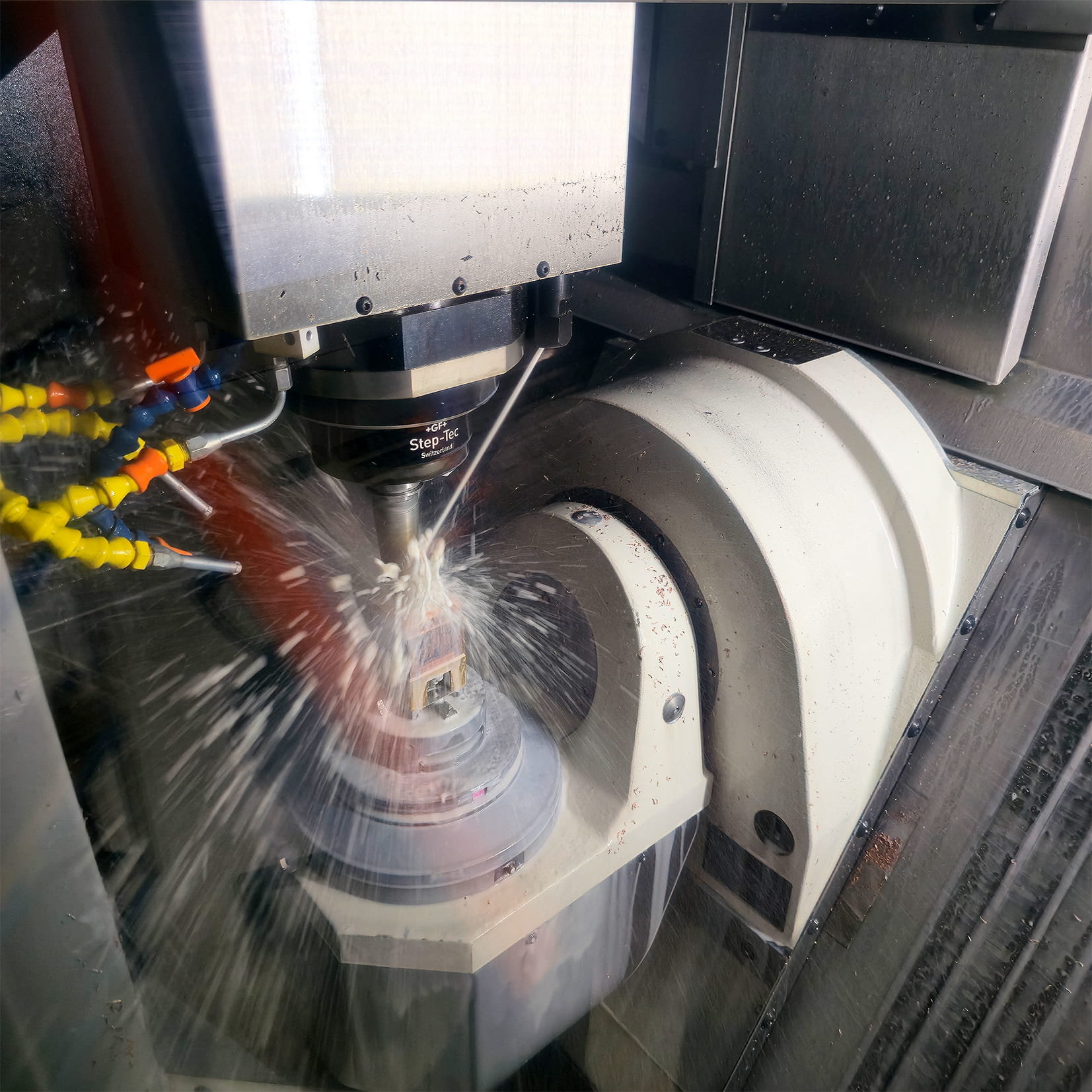 Il reparto produttivo è equipaggiato con 33 impianti, tra cui macchine per elettroerosione (sia a tuffo che a filo), fresatrici, rettifiche e centri di lavoro CNC a 3 e 5 assi. Questa dotazione consente di affrontare lavorazioni complesse e di adattarsi alle esigenze più diverse.